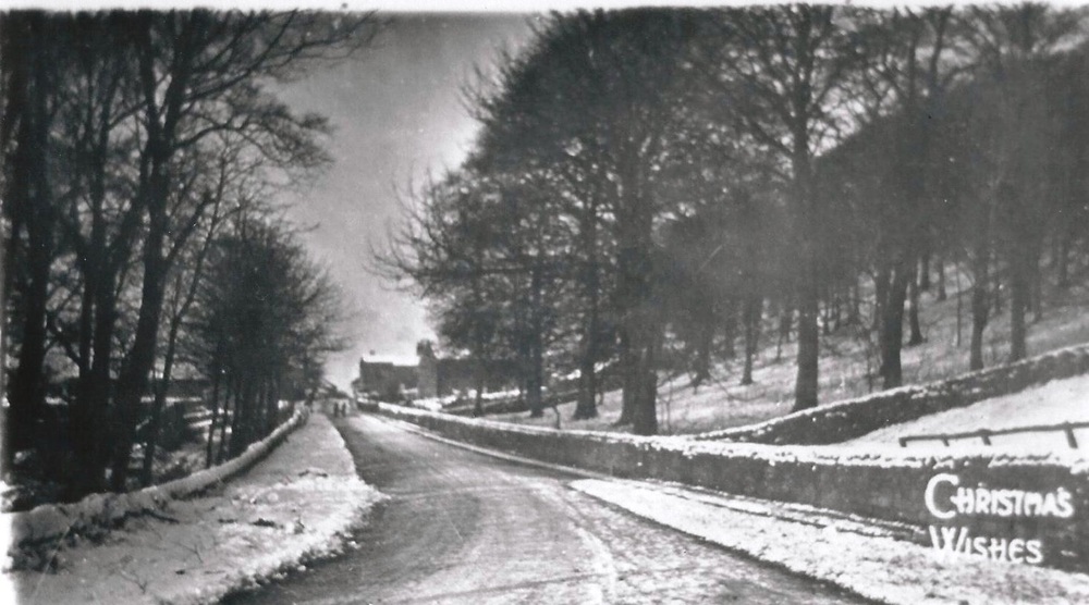 A snowy view of Hawksworth which featured on a Christmas card printed before 1920.